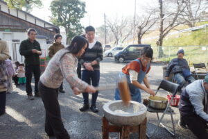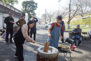 参加されているみなさんと一つの輪になって想いの共有・黙祷を終えたあと、お餅つきが開始されました。