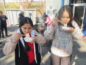 一方、視野の広いルビーは、手の空いている人を見つけては、小さくカットされたお餅をみんなの手に届くところへ配ってくれる裏職人。二人らしさが溢れており、とても微笑ましかったです(^^)